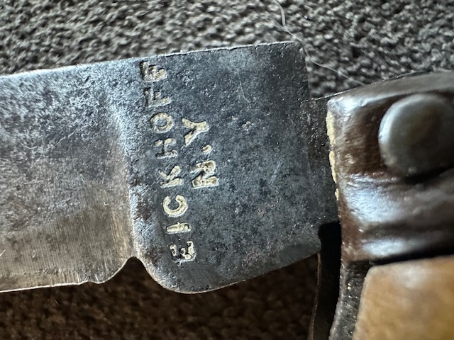 4 1/8″ Closed | Marked Eichoff NY Made c 1852-1860, has wear & patina, soft snap, some wobble, pocket worn stag, has a few pin cracks, very old American Knife & Rare, steel liner has a bend in it, see photos