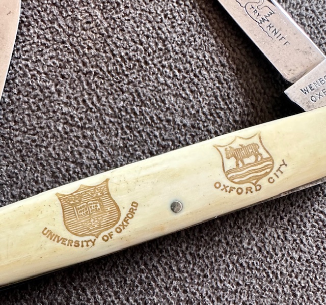 3 1/4″ Closed | Marked Wenborn Oxford,has some wear & scratches, Oxford City & Oxford University on handle, good snap, no wobble, nice smooth white bone like material, no cracks