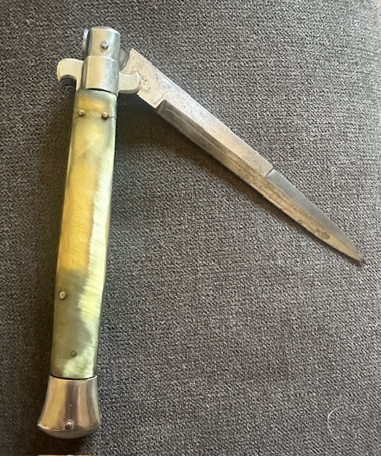 Old Vintage Stainless Steel Japan False Button Stiletto Manual Knife Humpback Lock Back